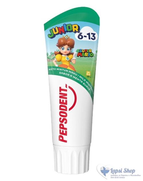 Pepsodent Зубная паста для детей 7-13 лет 75мл - предназначена для эффективной, бережной очистки и ухода за детскими зубами. Зубная паста Pepsodent разработана специально для детей возрастом 6-13 лет, так же как и во взрослых зубных пастах, в ней содержится фтор и кальций. Вашим детям понравится мягкий свежий вкус мяты этой зубной пасты.