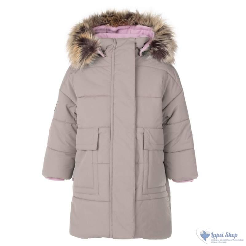 • Прямая модель пальто Ленне прошита резинками, на молнии, молния прикрыта ветрозащитной планкой.