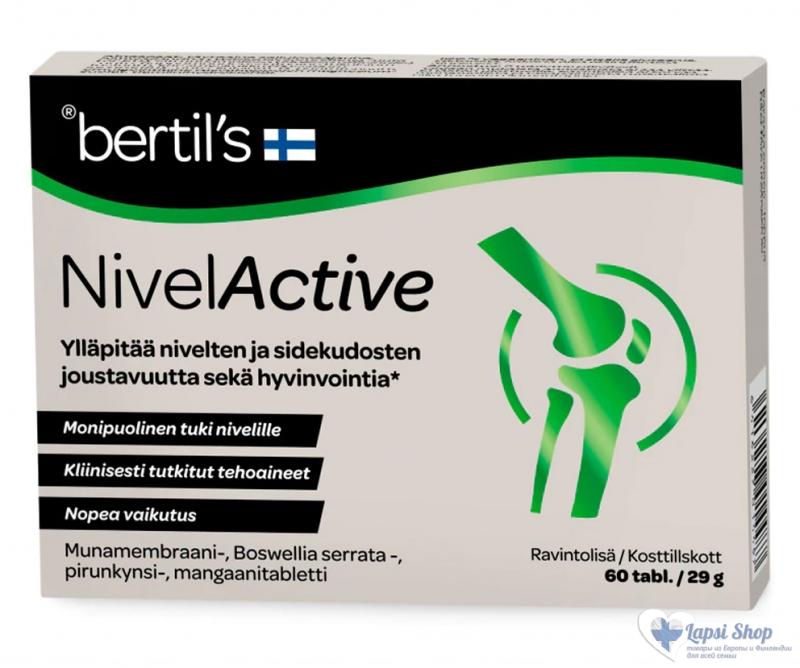 NivelActive Биологически активная добавка. Быстродействующие питательные вещества для здоровья суставов.Запатентованный экстракт яичной скорлупы NivelActive NEM® (Natural Eggshell Membrane) содержит богатую и сбалансированную смесь питательных веществ, важных для суставов, таких как хондроитинсульфат, гиалуроновая кислота и коллаген.Быстроусваеваемый марганец NivelActive способствует нормальному формированию соединительных тканей, таких как суставы, и поддержанию нормального состояния костей.Кроме того, специально подобранные для продукта растения Boswellia serrata и дьявольский коготь (корень гарпаго) дополняют оптимальный состав продукта.Состав: экстракт NEM (экстракт мембраны куриной яичной скорлупы), наполнитель порошок целлюлозы, экстракт Boswellia serrata, экстракт когтя дьявола (Harpagophytum procumbens), регулятор кислотности трикальцийфосфат, эмульгатор магниевые соли жирных кислот, бисглицинат марганца.Дозировка: 2 таблетки в день. Количество активных веществ / 2 таблетки: