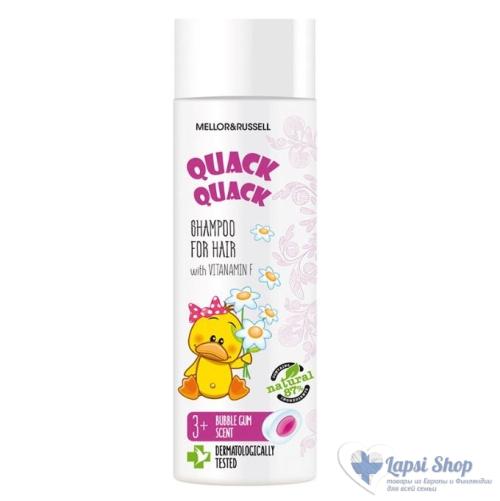 Шампунь для волос QUACK QUACK с витамином F. Результат - очищенные и мягкие волосы с приятным ароматом жевательной резинки. Витамин F - для укрепления и блеска волос.Дерматологически протестирован. Подходит для ежедневного использования. Не содержит силиконов и минеральных масел. Не подходит для детей до 3 лет.Способ применения: Нанесите на влажные волосы, вотрите до образования пены, затем тщательно смойте водой.